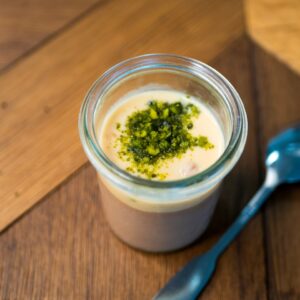 Crème de mousseline pralinée, biscuit moelleux et noisettes torréfiées