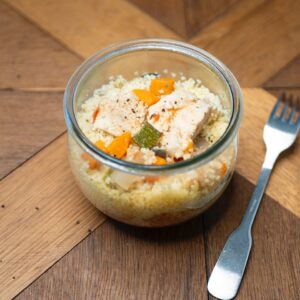 Pomme de terre (25%), poulet (25%), crème végétale (eau, huile de tournesol, fèves de SOJA décortiquées , sucre, émulsifiant, stabilisants , sel marin de table, arôme), champignon (8%), épices, roux blanc, eau, GLUTEN, LAIT, CELERI.
